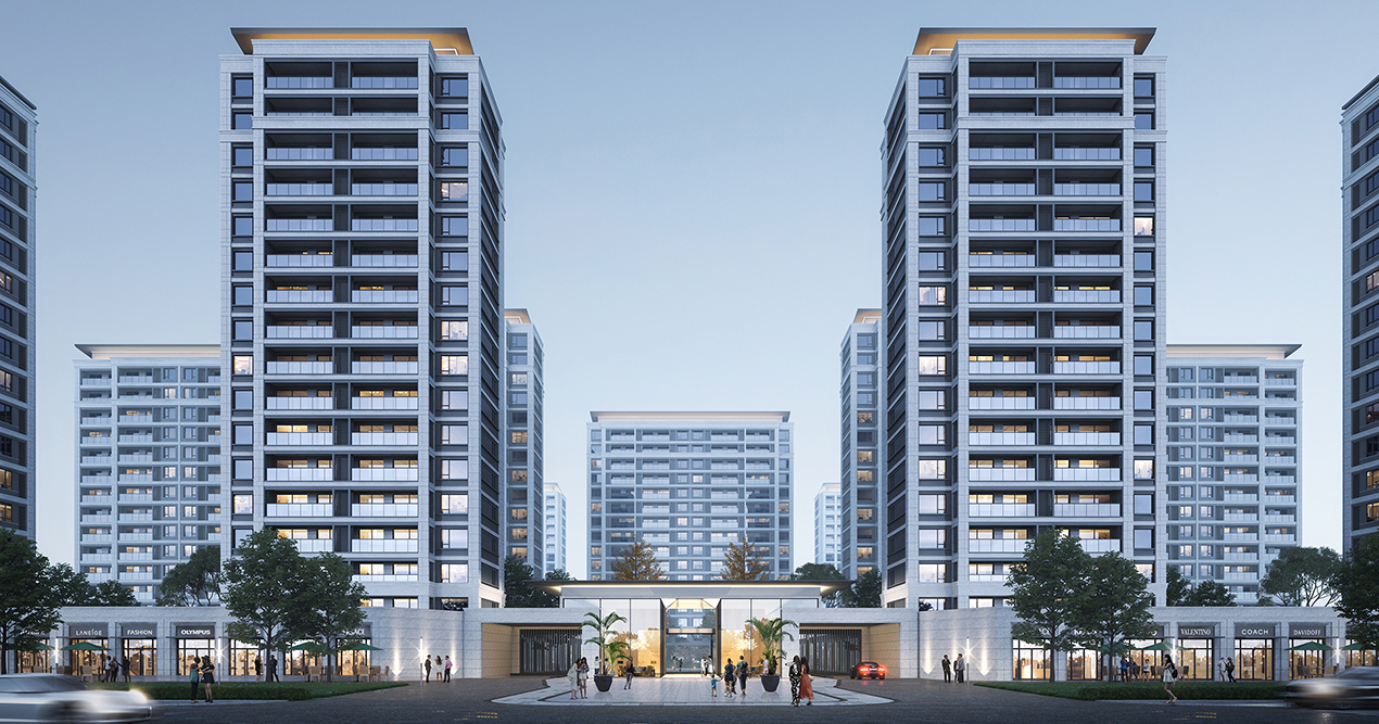 項目總用地面積約為271.72畝,總建筑面積約57.50萬平方米,其中地上建筑面積40.51萬平方米,地下建筑面積16.98萬平方米,共設計戶數約3240戶,分為三個區域地塊進行建設。